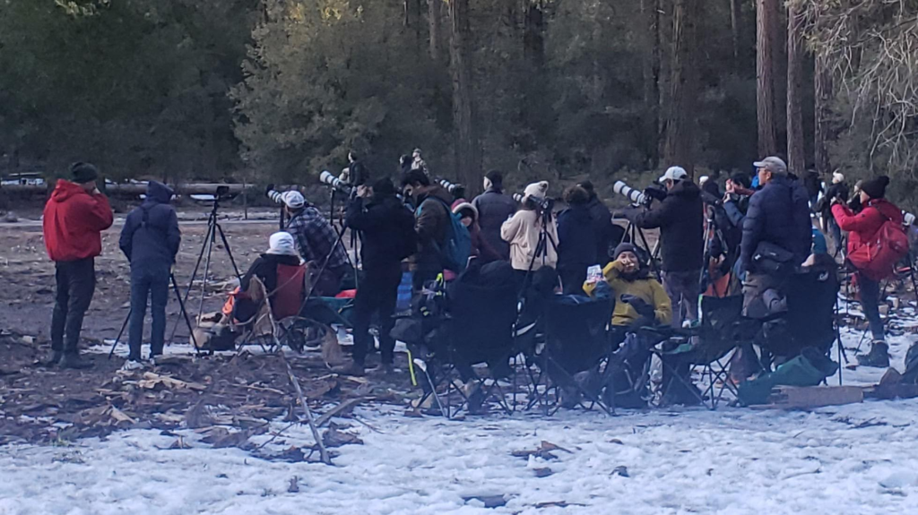 As you can see from the picture above, the weather will most likely be cold! Most years there is still snow on the ground. Don’t forget to pack warm clothing, gloves, hats and hand warmers. If you plan to get there super early consider bringing a camping chair and something to entertain yourself with like a good book. A good snack always goes a long way as well! You don’t want to lose your hard earned viewing spot if you need to go back to get food.